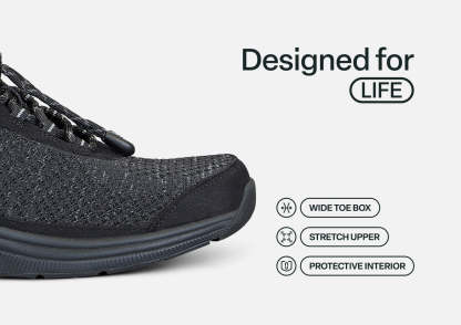 Our ever-popular, essential comfort sneaker in breathable stretch knit works wonders for many conditions with a pressure-free fit and seam-free interior that follows your foot's every curve, bone and bump. Enjoy all the easy walking advantages of our advanced Ortho-Cushion™ System and the customizable support that makes the Coral an everyday sport hero.