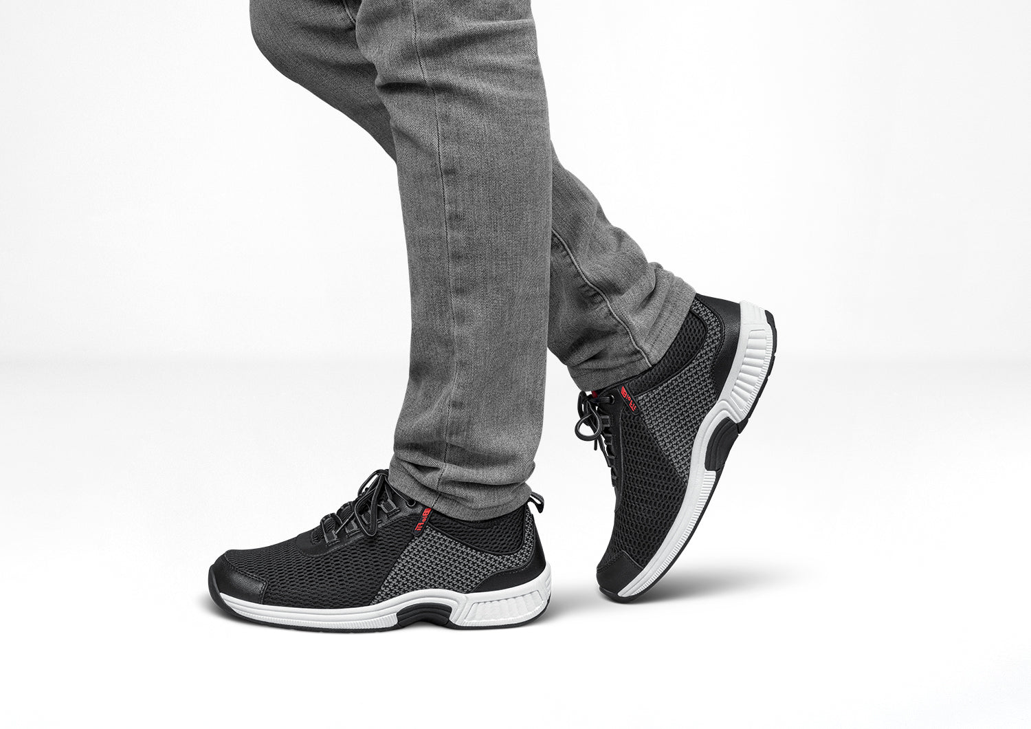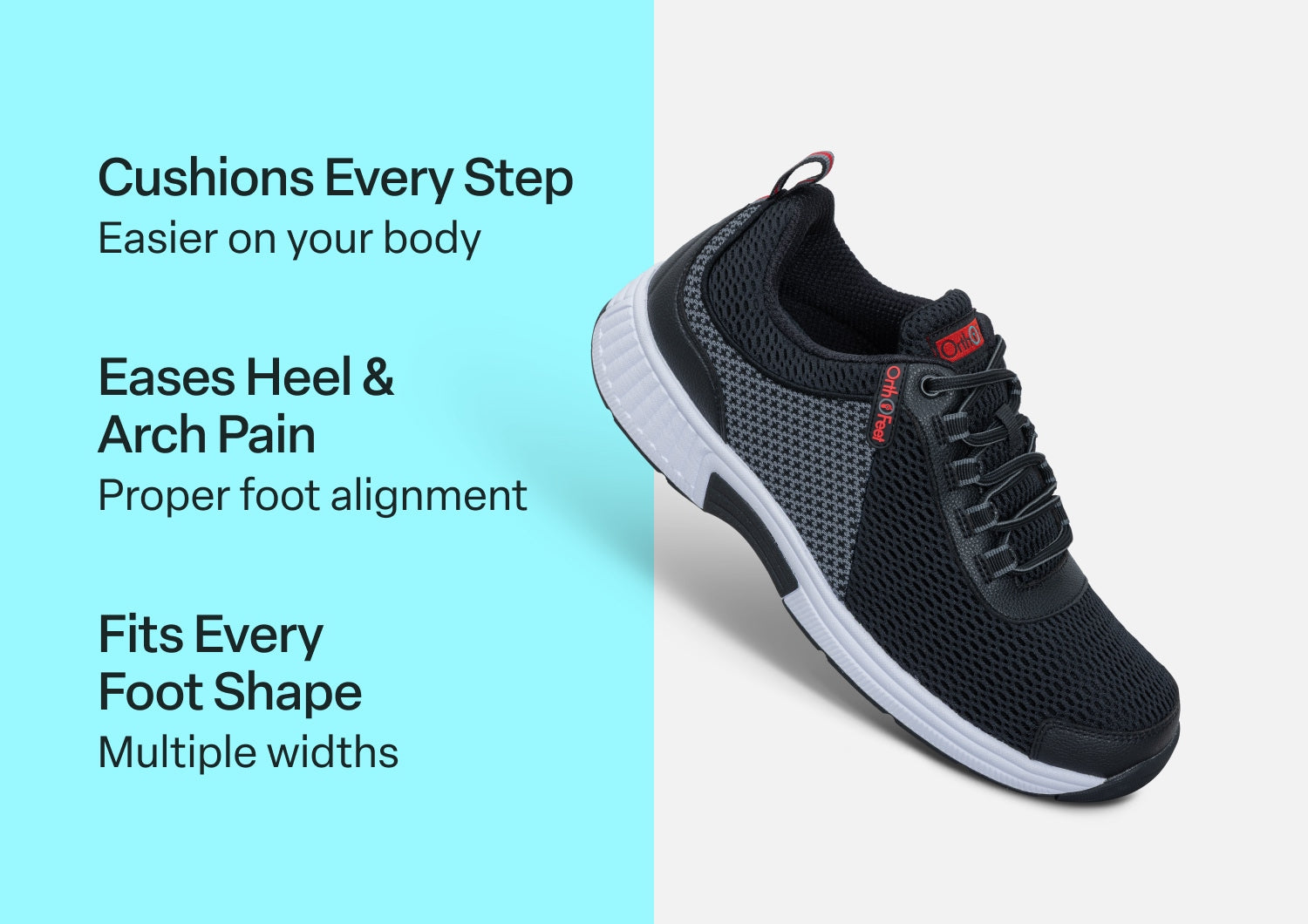 Cover more miles with less foot pain in this light, bio-engineered comfort sneaker, featuring breathable stretch knit fabric and the easy walking, Ortho-Cushion™ System. Edgewater's upper takes the pressure off sensitive conditions with a relaxed personal fit, extra depth and a soft interior. Four available widths and adjustable arch support make every advantage yours.