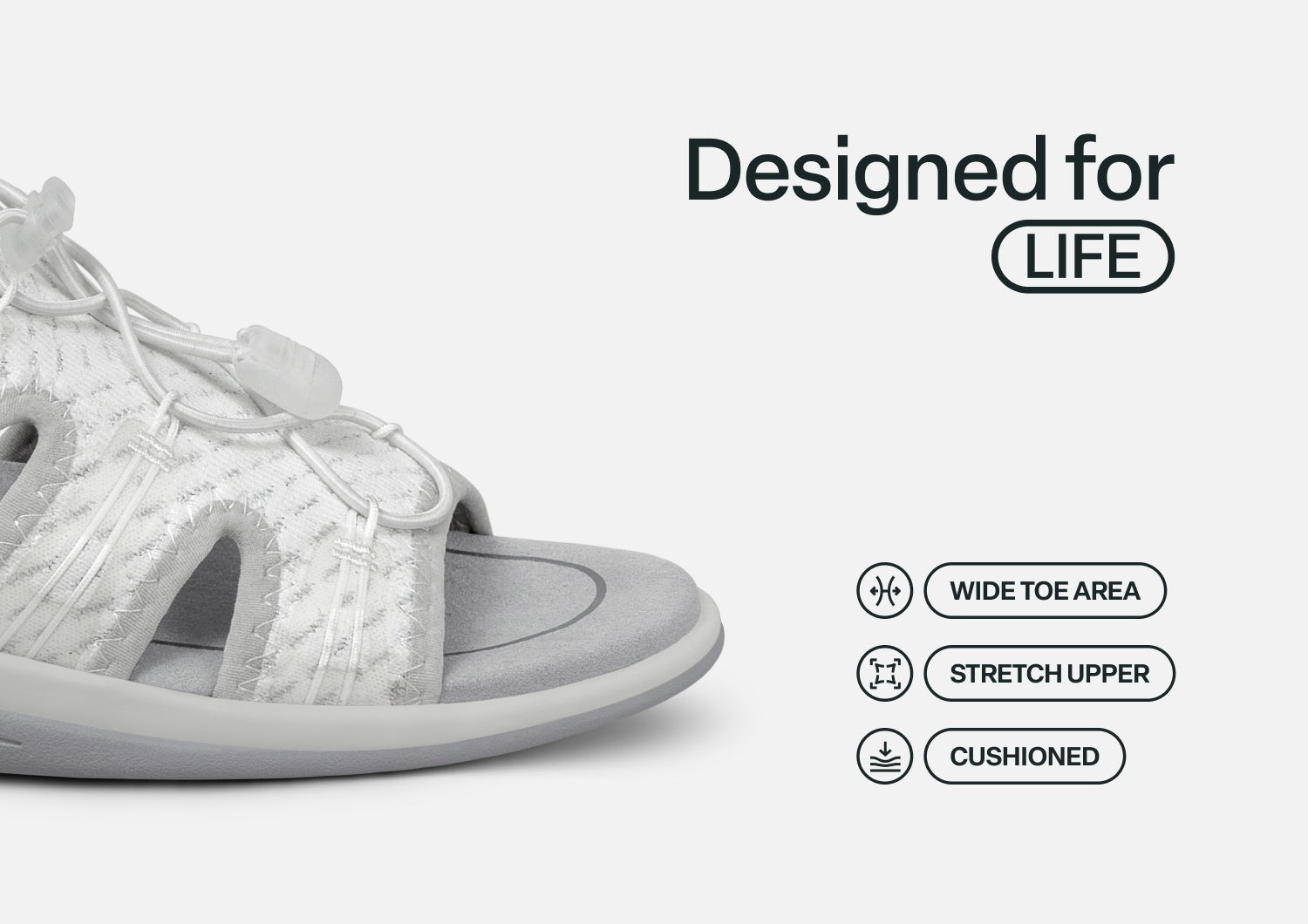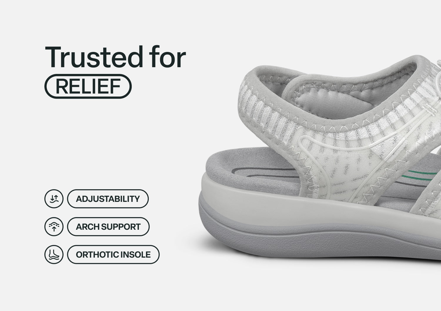 The easygoing style of this casual women's sandal makes it a little hard to believe how much support and walking comfort it provides. The stretchable, breathable fabric upper gently follows every shape of your foot with a bungee lace to set the perfect active fit. Open the padded heel strap, slide in and adjust. Now let the Ortho-Cushion™ System make every vista a pleasure to reach.