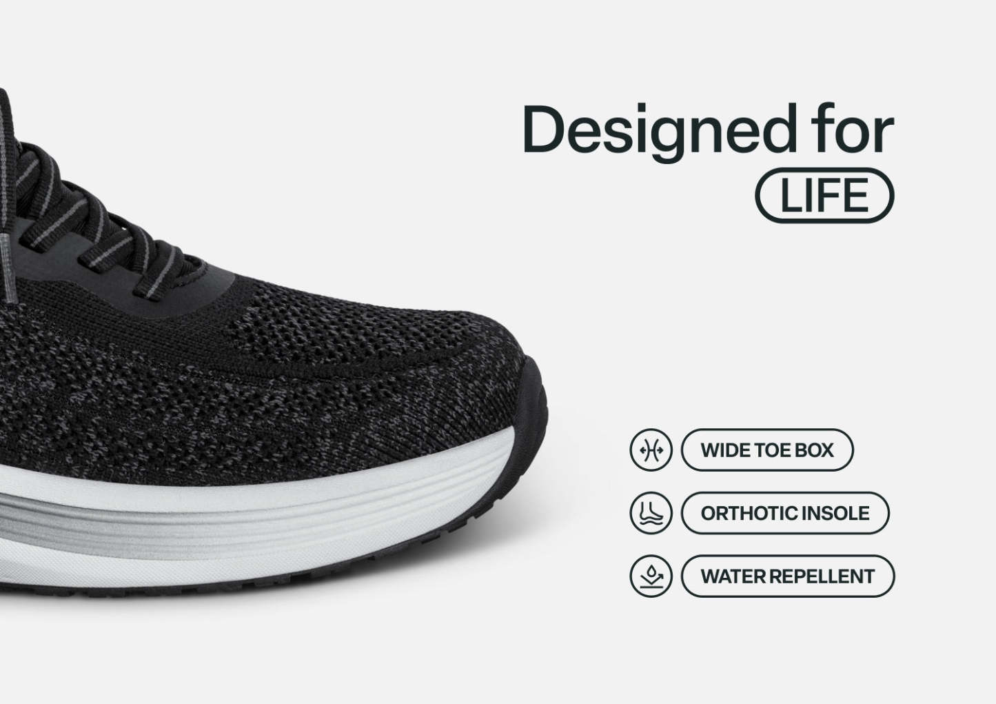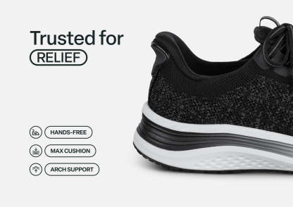 Nira takes your active, pain-free comfort to the next level in modern sneaker style. With our patented hands-free technology, you can skip the laces. Just step-in and go! The water-repellant stretch upper keeps pressure off sensitive areas, while an advanced orthotic sole design disperses walking impact, to get you happily through every day's finish line.